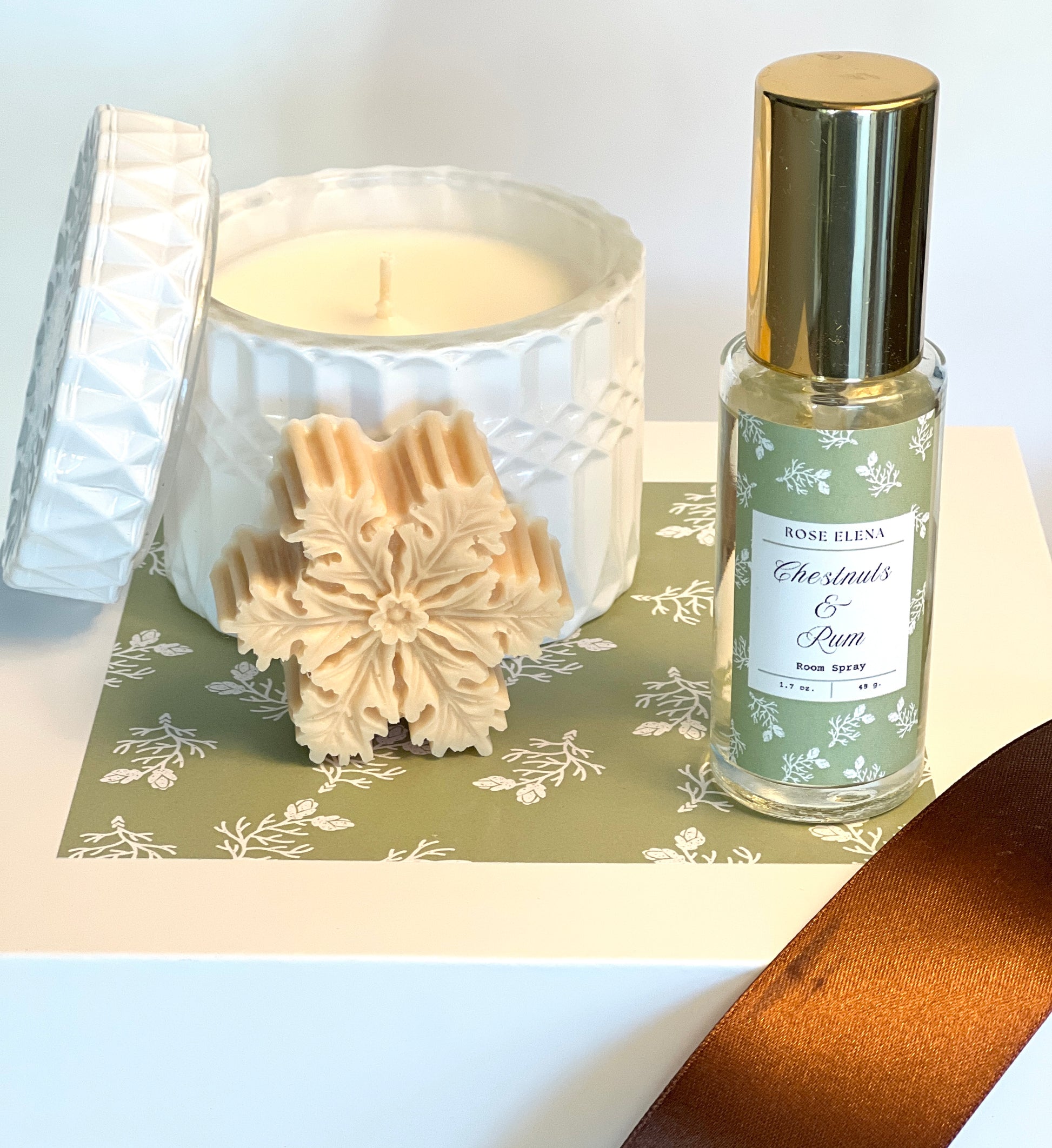 Delight your senses this holiday season with our curated Holiday Gift Box, featuring a trio of luxurious, handcrafted essentials: